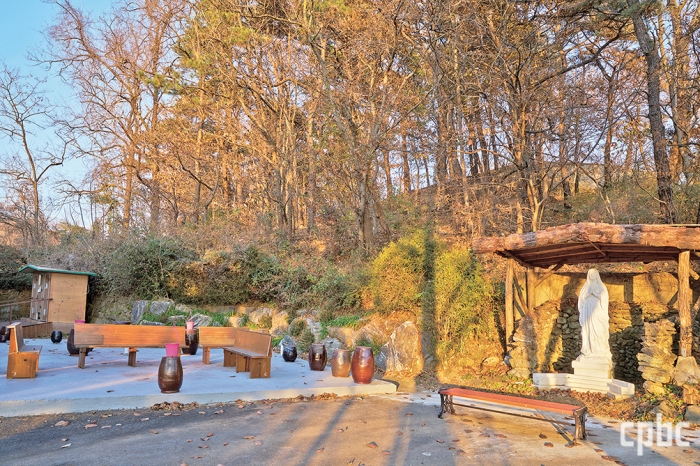 | 의정부교구 법원리본당 주내공소는 1965년 12월 4일 ‘한국의 모후’께 봉헌됐다. 공소 마당 한쪽에 설치된 루르드 성모상 |