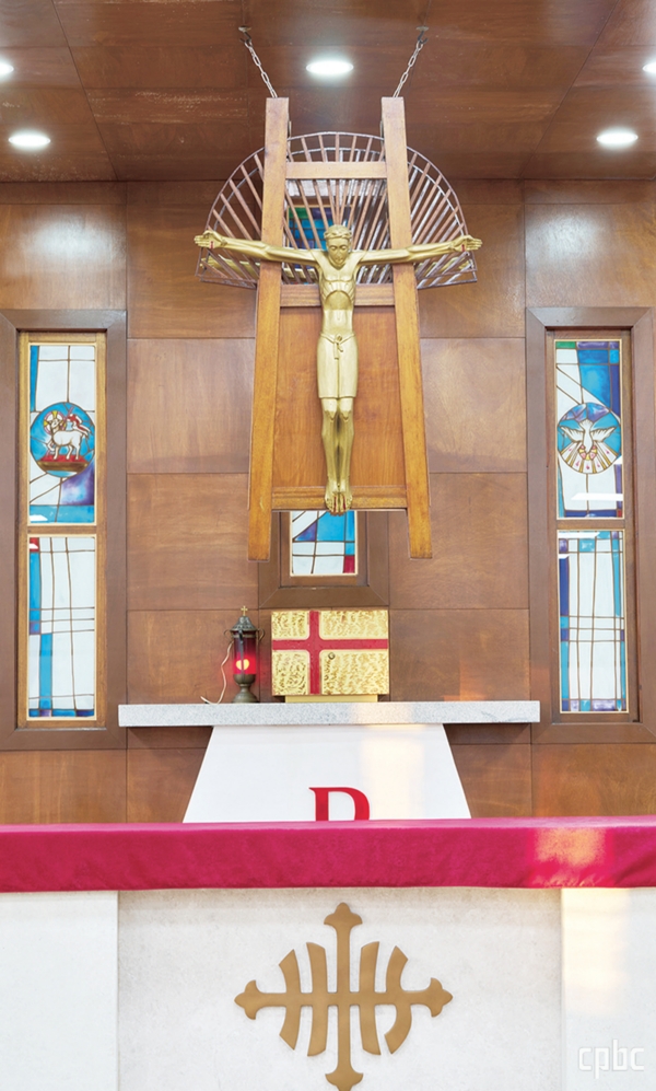 | ‘지게 진 예수상’. 세계에서 유일무이한 이 제단 십자가는 한국전쟁 당시 미군을 도와 희생했던 ‘지게 부대’ 민간인들과 인간 구원의 무거운 짐을 진 예수 그리스도를 상징한다 |