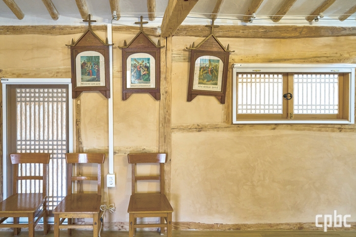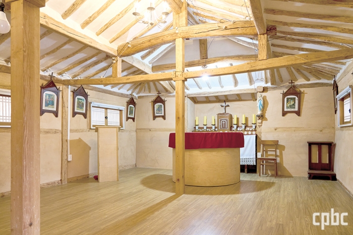 | 지금의 양촌공소는 1949년 페랭 신부가 옛 초가 성당을 헐고 지은 공소 모습 그대로 2017년에 복원한 것이다. 양촌공소 내부 |