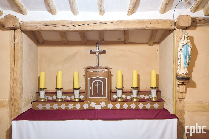 | 양촌공소 제대. 벽을 파서 사각형 앱스를 만들어 제단 형태로 꾸미고 옛날에 사용했던 벽제대를 그대로 설치해 놓았다 |
