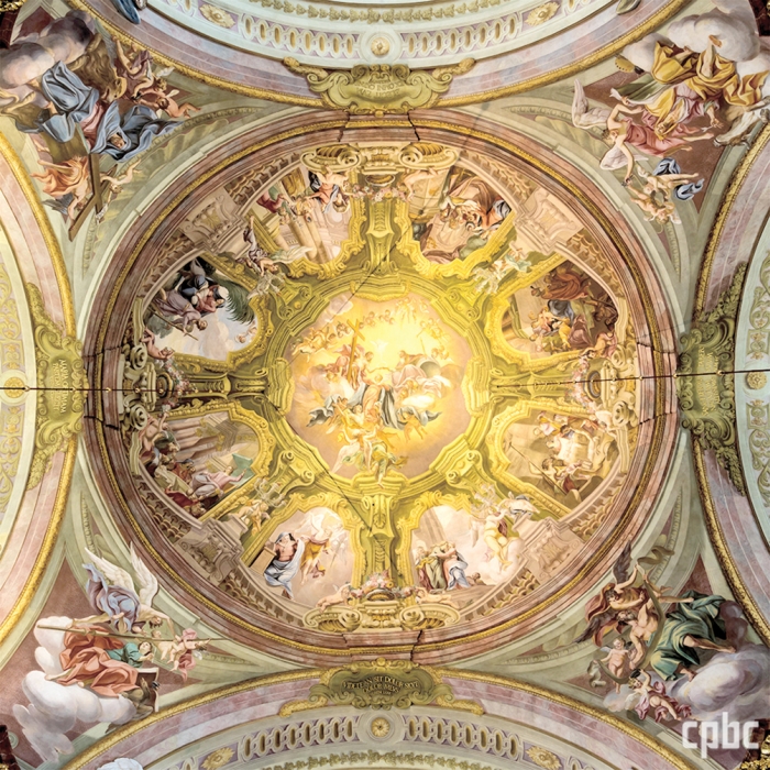 | 성모 승천을 주제로 한 돔 천장화. 성모 승천이 중심축이 되어 성모 마리아의 삶의 여덟 장면을 담고 있으며, 네 복음사가를 그린 묵중한 네 기둥이 돔을 받치고 있다 |